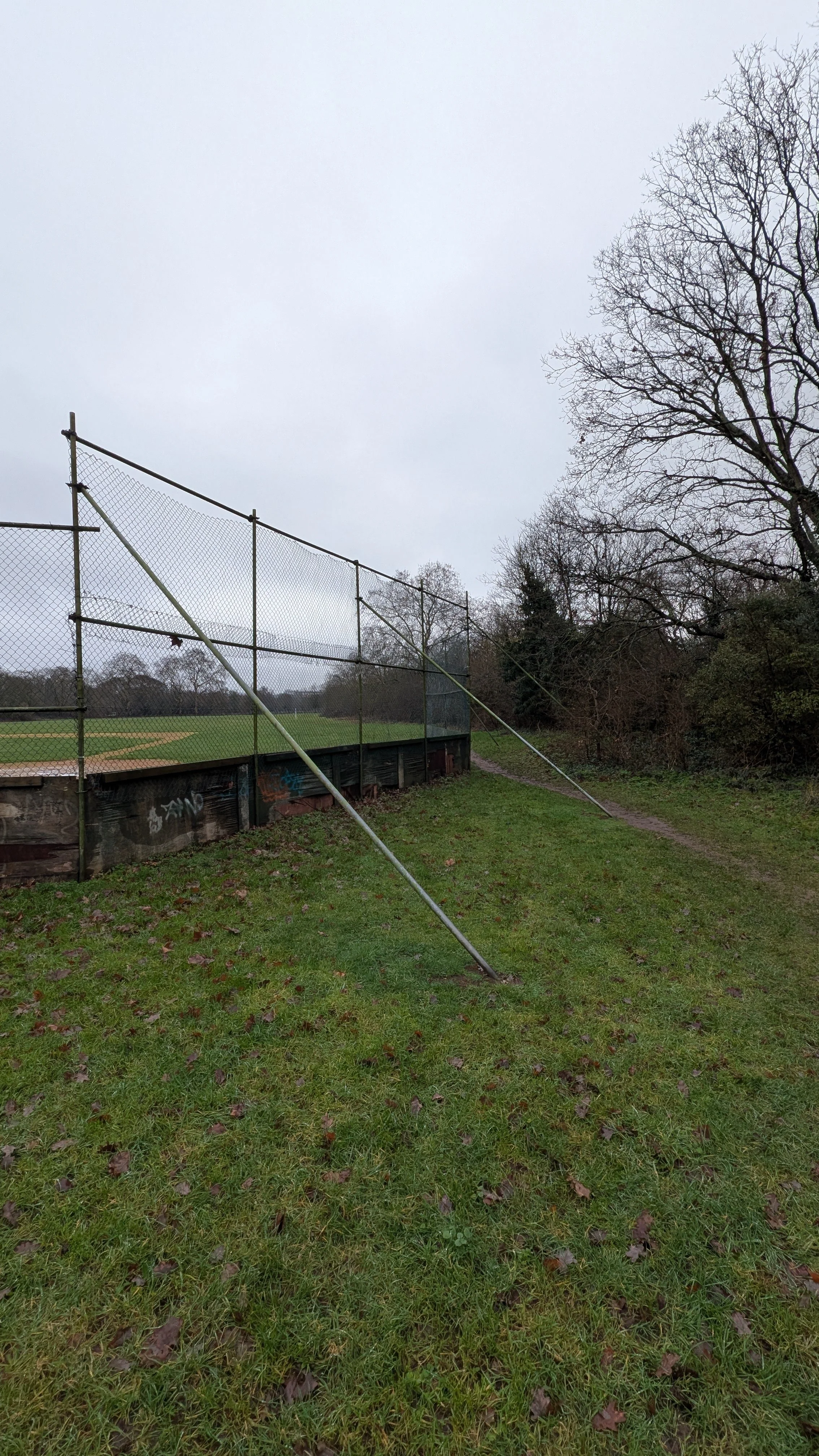 Structural supports currently encroach on the edge of the field, which is also used as a pedestrian footpath